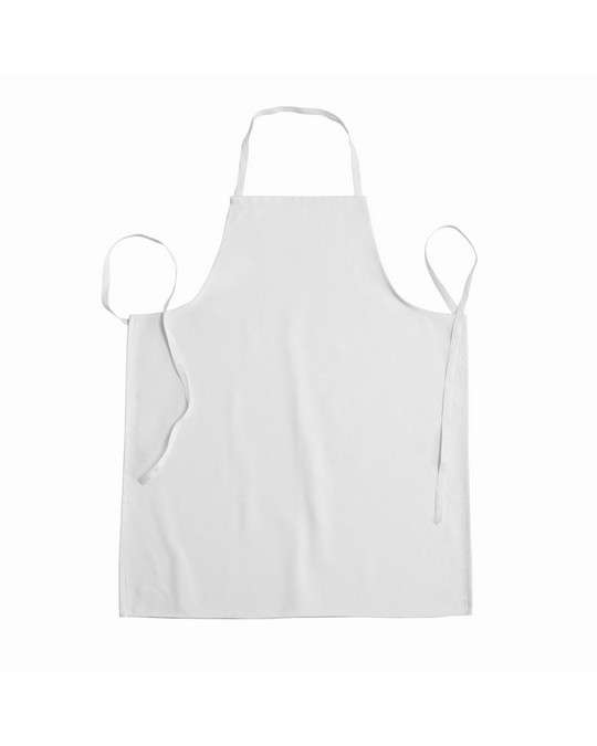 Parananza in cotone con lacci in tessuto dello stesso tipo al collo e ai fianchi, orlo perimentrale di 1 cm. Misure cm 70x85.