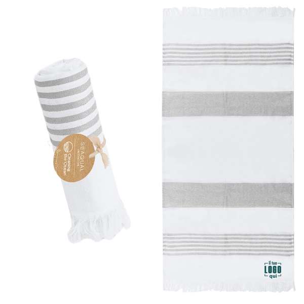 Asciugamano a Righe e Frange Morbido e Sostenibile in Cotone e Poliestere Riciclato Personalizzato Perfetto come Articolo Promozionale-TIRLING