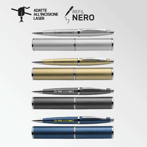 Personalizzabile con serigrafia, tampografia, stampa UV e incisione laser su penna.