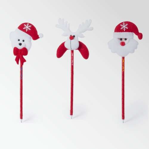 Festeggia il Natale con stile grazie a questa penna natalizia dall’originale design e finitura metallizzata lucida. Disponibile in tre soggetti iconici: Babbo Natale, renna e orsetto, ogni penna porta un tocco di magia e allegria alle tue giornate. Il fusto metallizzato conferisce un aspetto elegante e brillante, mentre l’inchiostro blu assicura una scrittura scorrevole e di qualità. Ideale come gadget promozionale natalizio o come regalo originale per clienti, colleghi e amici durante le festività.