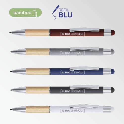 La penna Linea Natura a pulsante è la sintesi perfetta tra eleganza e sostenibilità. Il suo fusto in alluminio opaco con dettagli coordinati si abbina a un’impugnatura in bambù naturale, un materiale resistente e rinnovabile che valorizza il design con un tocco eco-friendly. Completata da una clip in metallo e da un anello trasparente, offre uno stile moderno e raffinato. Il refill blu assicura una scrittura fluida e piacevole. Disponibile in una vasta gamma di colori, è ideale come gadget aziendale personalizzabile per campagne promozionali attente all’ambiente.