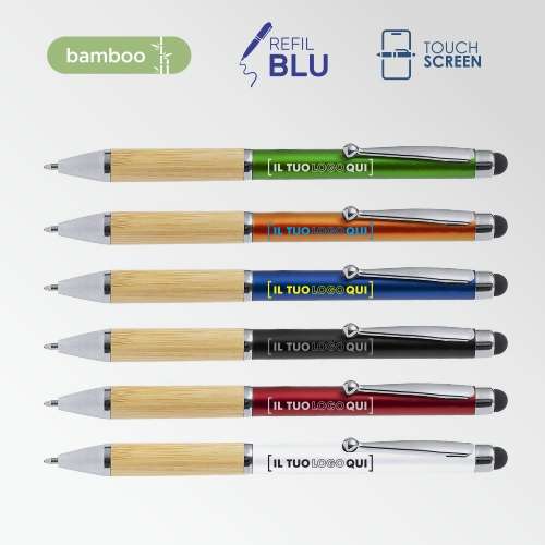 Penna touch in bambù con rotazione e colori metallici | Personalizzata