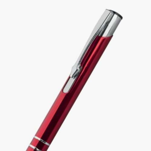 Penna a sfera in alluminio con minuterie cromate, meccanismo a scatto e refill jumbo con sfera al tungsteno. Inchiostro nero. Personalizzabile con incisione, serigrafia, tampografia o UV.