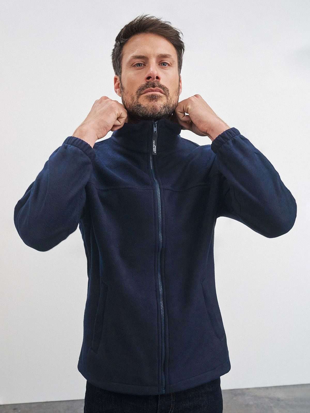 100% poliestere. Giacca sportiva in fleece pesante, Fleece anti pilling di facile manutenzione. Colletto a lupetto, cuciture doppie sul giro manica e sulle spalle, Cordino con stopper sull'orlo, bordini elastici con elastan. Due tasche con cerniera, Tessuto esterno (300 g/m²). Colletto alla coreana, taglie forti da 4XL