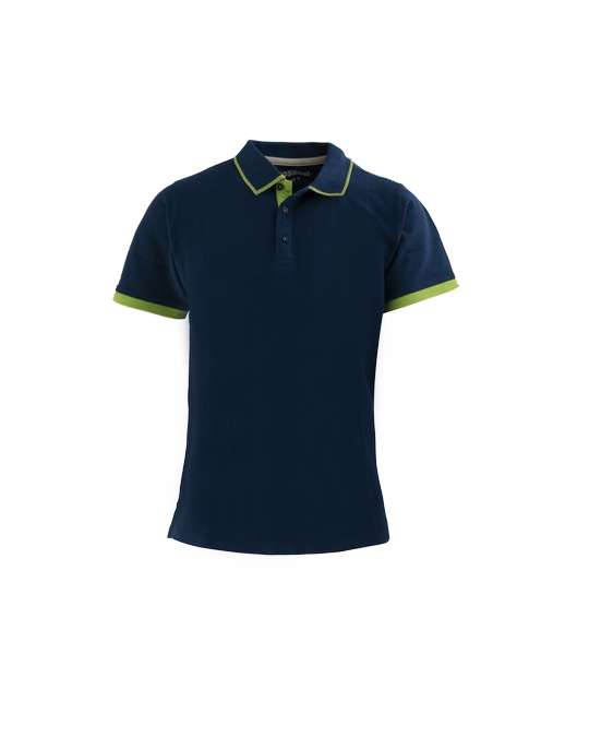 Polo mezza manica da donna con fascia parasudore e bottoniera di colore a contrasto, collo con profilo di colore a contrasto chiuso con tre bottoni, giromanica a costina e spacchetti laterali al fondo di colore a contrasto.