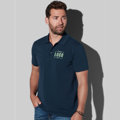 100% cotone ring-spun, piqué. Polo a maniche corte set-in, 3 bottoni tono su tono, colletto e polsini a costine, struttura con cuciture laterali. Col. GYH: 85% cot. 15% vis.