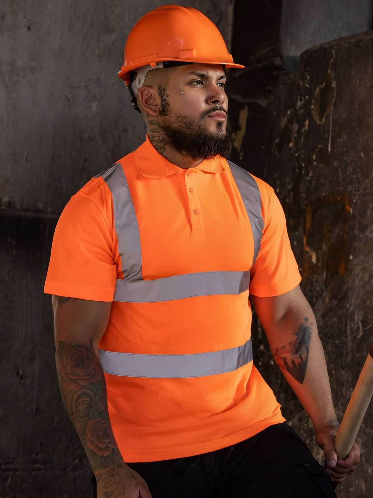 55% cotone, 45% poliestere. Polo ad alta visibilità, certificata secondo la normativa EN ISO 20471:2013 + A1:2016, colore arancione conforme anche alla normativa GO/RT 3279, Oeko-Tex® Standard 100. Pregiato tessuto piqué di altissima qualità, 180 g/m² di grammatura, due fasce riflettenti larghe 5 cm intorno al corpo, 1 fascia riflettente su ogni spalla. Poliestere morbido e traspirante per parte esterna, cotone delicato sulla pelle per la parte interna, durata delle proprietà riflettenti in conformità alla normativa EN per 25 cicli di lavaggio a 40°C. Confezionata singolarmente in una pratica borsa in polietilene.