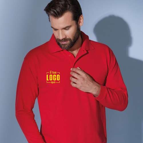 Polo Classica Uomo 100% Cotone a Manica Lunga, Collo a 3 Bottoni, Spacchetti Laterali Personalizzata come Capo Promozionale