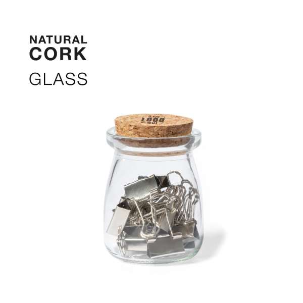 Porta Fermagli in Vetro e Sughero Personalizzato Ideale come Gadget per Uffici