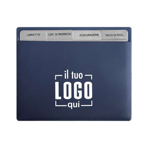 Portadocumenti per auto, moto e farmacia, ideale per tenere in ordine i tuoi documenti. Personalizzabile con stampa serigrafica o UV, resistente e pratico per ogni utilizzo.
