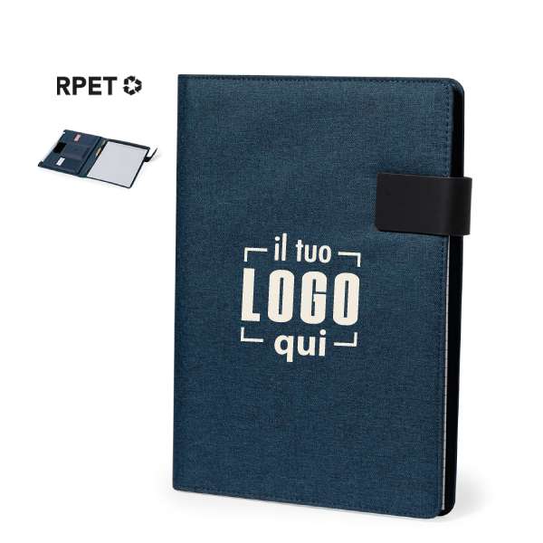 Cartellina Organizer con Patta Magnetica in Tessuto Riciclato Personalizzata per Fiere, Congressi, Ufficio