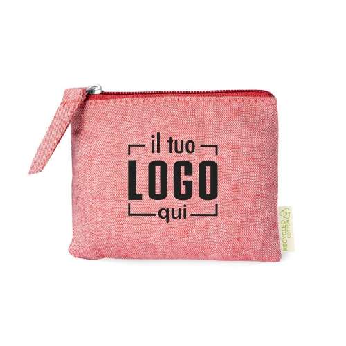 Portamonete in cotone riciclato al 100%. Scomparto principale con chiusura a zip e tirazip in tinta. Con logo cotone riciclato all'esterno e disponibile in una vasta gamma di colori.