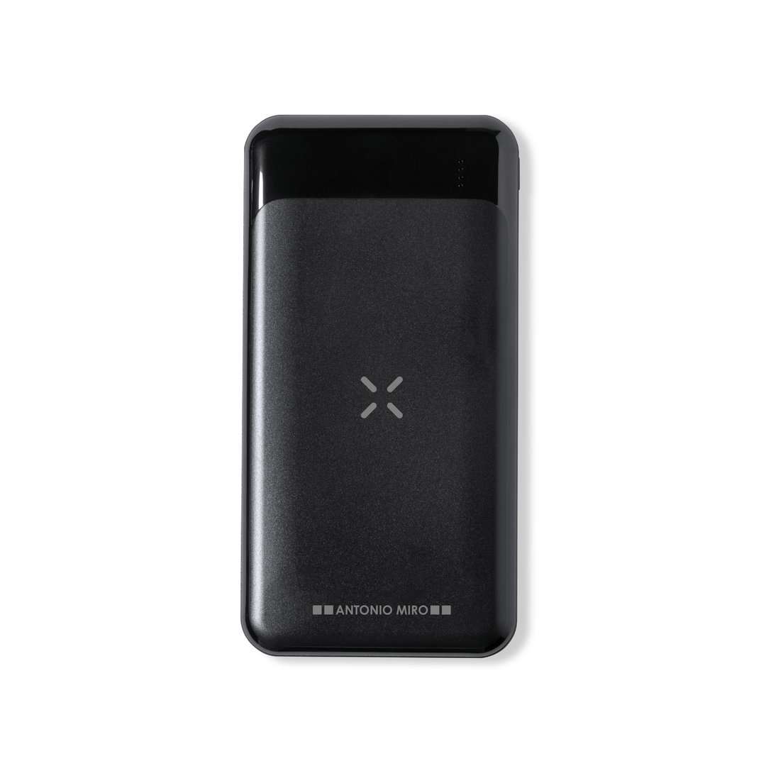 Power bank bydi Antonio Miró, in unelegante finitura nera opaca, con il logo del marchio sul corpo. Realizzata in resistente ABS, ha una capacità di 5.000 mAh e un caricatore wireless integrato da 5W. 2 uscite USB, con doppia connessione Type-C in/out e ingresso Micro USB. Compatibile con i dispositivi dotati di tecnologia di ricarica wireless Qi. Indicatore di stato di carica a LED, con cavo di ricarica Type-C incluso. Presentato in una scatola nera individuale con logo Antonio Miro, con manuale di istruzioni in inglese e spagnolo. Le capacità indicate su tutte le nostre batterie ausiliarie esterne sono reali, incorporando tutte batterie di grado A e non riciclate, con una durata di almeno 500 cicli di carica e conformi alle normative CE.Inoltre, sono prodotte secondo gli standard RoHS e in conformità ai seguenti requisiti di sicurezza:Sistema di protezione da sovraccarico del power bank;Sistema di protezione dalla scarica completa per una maggiore durata del power bank. Sistema di blocco per prevenire i cortocircuiti.Sistema di trasferimento costante della carica, in base alla capacità del dispositivo di destinazione.
