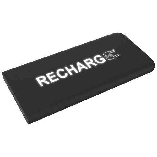Power bank wireless da 5.000 mAh, realizzato in gomma, con logo luminoso, cavo in plastica PET riciclata 3 in 1 (tipo C, Android, iPhone) e trattamento antibatterico. Il dispositivo si illumina per 30 secondi quando viene toccato o ricaricato. Capacità: 5000 mAh. Ingresso: 5 V/2,4 A (micro). Uscita: 5 V/2,4 A (USB). Uscita wireless: 5 V/2 A max. Frequenza: 110 kHz - 205 kHz. Peso netto: 148 grammi. Dimensione: 140 x 67 x 11,8 mm. Fornito in una confezione regalo realizzata in carta riciclata.