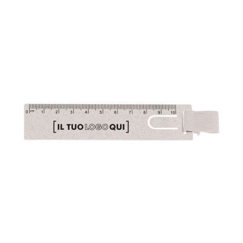 Righello segnalibro in fibra di grano con elastico portapenne – 10 cm | Personalizzato