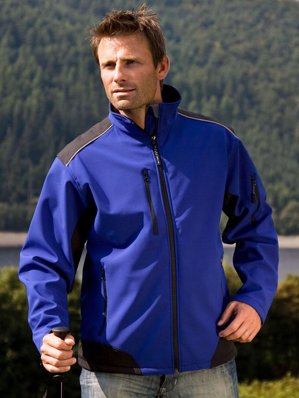 93% poliestere, 7% elastane. Giacca in softshell a 3 strati, tessuto traspirante, impermeabile e antivento. Interno in micropile. Zip antivento e protezioni antivento posteriori. Una tasca sul petto con zip, due ampie tasche frontali con zip e una tasca sulla manica con zip.