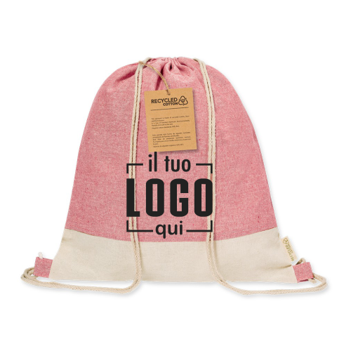 Realizzata in 100% cotone riciclato da 120 g/m², questa sacca zaino unisce sostenibilità e funzionalità. Dotata di corde auto-chiudenti in cotone con passanti in tessuto rinforzato, offre una chiusura sicura e confortevole. La base in tinta naturale è perfettamente coordinata con le corde, mentre l'etichetta laterale con logo eco valorizza l’anima green del prodotto. Disponibile in una variegata gamma di colori naturali, è ideale per eventi, merchandising ecologico e utilizzo quotidiano.