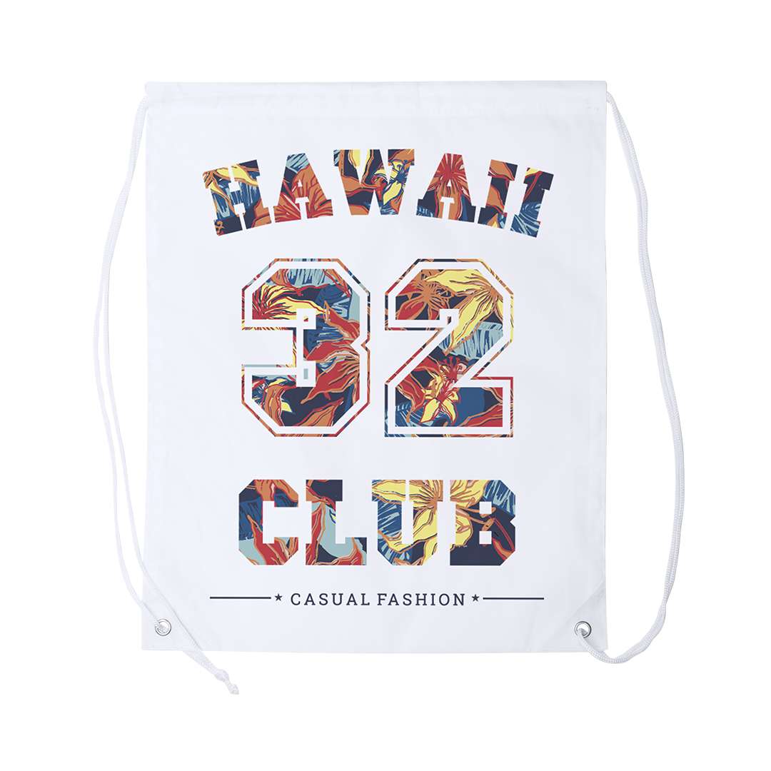 Sacca in morbido poliestere in un'ampia gamma di colori. Con corde nere autobloccanti, angoli rinforzati in similpelle in tinta e robusti anelli in metallo. Colore bianco speciale per la sublimazione.