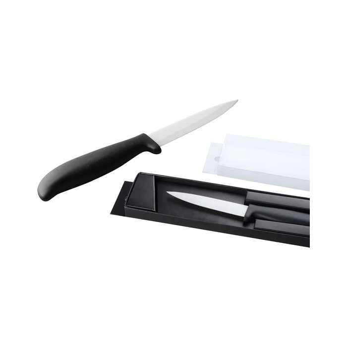 coltello ; coltello con lama in ceramica ZR02 lucidata e rifinita a mano ; manico ABS+TPR ergonomico ; corredato di astuccio