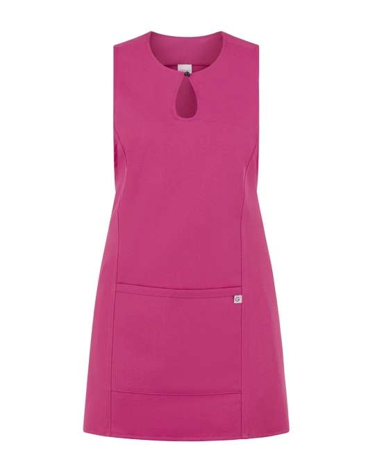 Lo scamiciato Gioia, è coperto nel dietro, ha un elegante scollo a goccia, presenta due tagli sui fianchi, impunturati a piedino, un’ampia tasca centrale, e quattro lacci, posti due sul davanti e due sul dietro che lo fanno aderire in vita. É realizzato in 100% poliestere di media grammatura, resistente alle alte temperature e al candeggio, ed è disponibile in ben quattordici varianti colore.