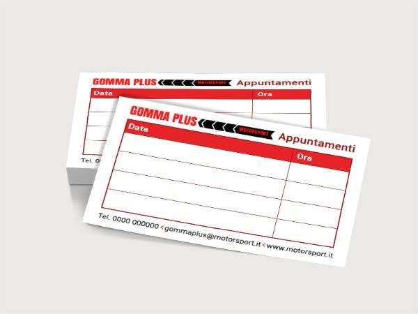 Stampa schede per appuntamenti personalizzate con giorni da crocettare, orari e spazio pubblicitario. Ideali per studi, saloni e uffici. Disponibili da 10 pezzi.