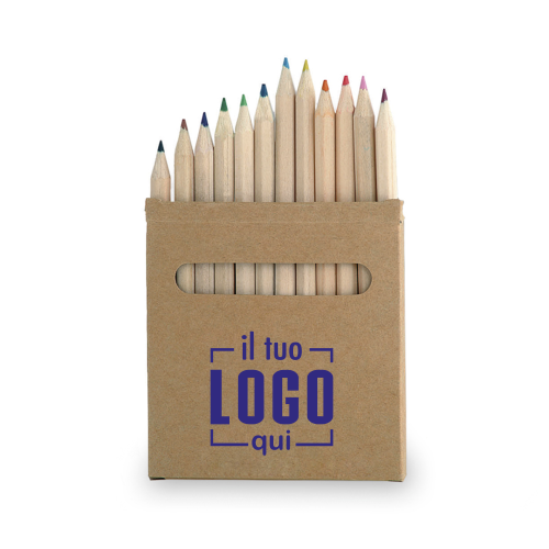 Set da 12 matite colorate in legno con finitura naturale, presentate in un astuccio in cartone riciclato con finestra trasparente. Corpo esagonale per una presa comoda e stabile, con mine in una varietà di colori vivaci. Perfetto per scuole, eventi creativi o come gadget promozionale ecosostenibile.