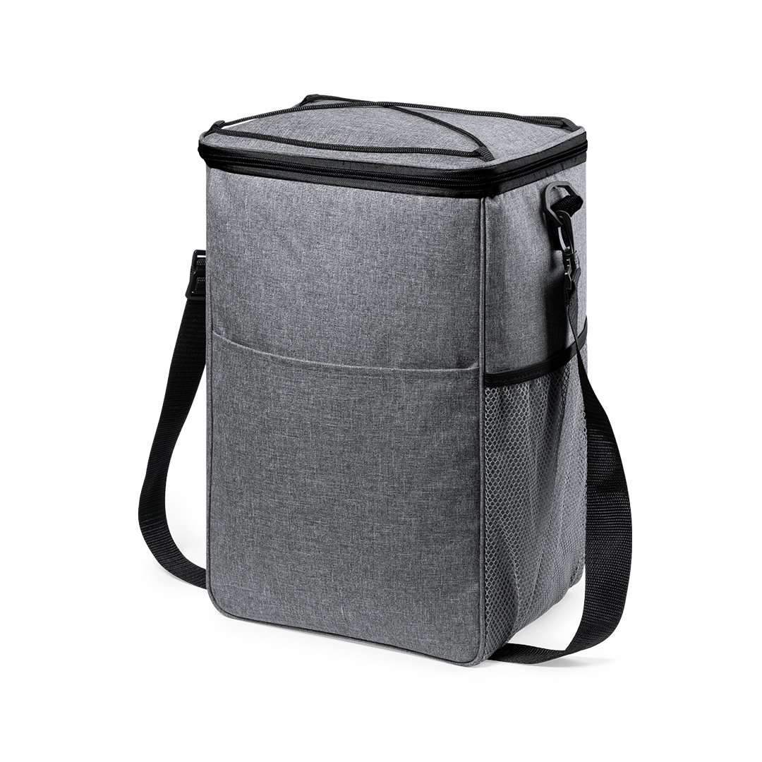 Set da barbecue con 3 accessori. Include: Sacca da trasporto/refrigerante in resistente poliestere RPET 300D, ricavato da plastica riciclata, che favorisce il riutilizzo dei rifiuti plastici e aiuta la sostenibilità del pianeta. Con tracolla regolabile e moschettone, include un interno isotermico in PEVA per mantenere il cibo alla giusta temperatura. Logo RPET sulletichetta esterna.Spatola, pinze e forchetta in metallo, con manici di colore nero.