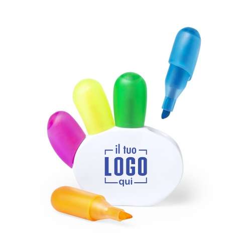 Set 5 evidenziatori fluorescenti con supporto bianco | Personalizzato