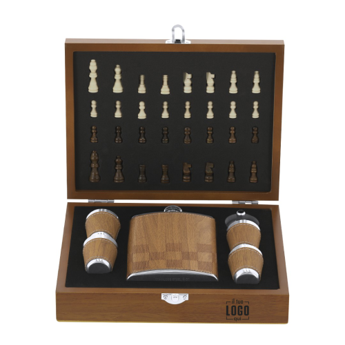 Set Fiaschetta e Bicchierini in Legno e Acciaio con Scacchiera Incorporata Personalizzata Perfetta come Articolo da Regalo- FLEET