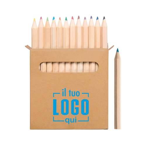 Porta colore e creatività sempre con te con questo set di 12 mini pastelli già temperati. Comodi e pratici, sono custoditi in un astuccio in cartoncino naturale, che li rende leggeri, eco-friendly e perfetti da regalare. Un gadget creativo ideale per scuole, eventi e attività promozionali. La custodia è personalizzabile con diverse tecniche di stampa: serigrafica, tampografica o UV per un risultato di grande impatto visivo.