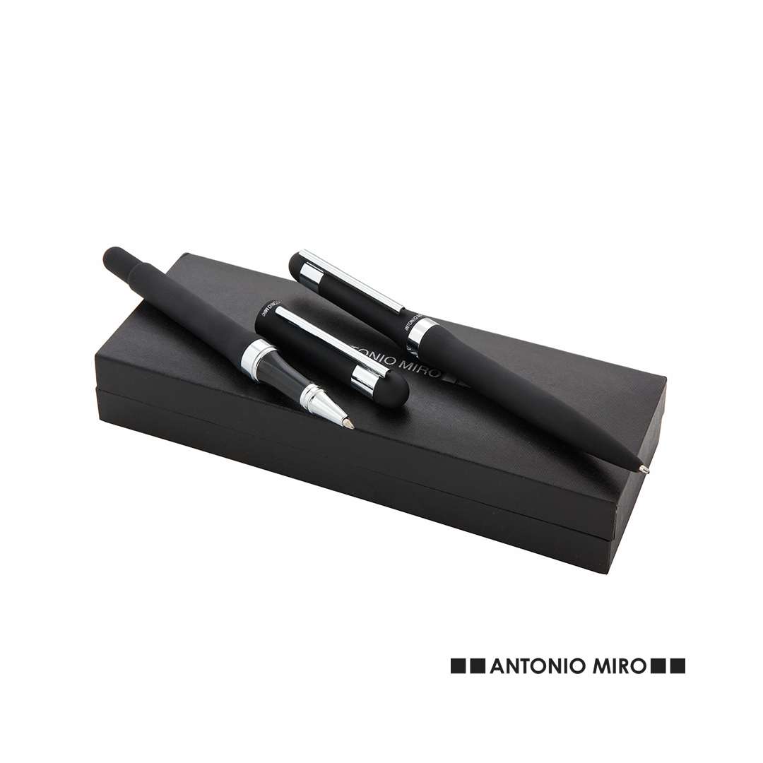 Set composto da penna a rotazione e roller con cappuccio, entrambe in alluminio riciclato certificato GRS. Clip in metallo, fusto a finitura lucida con logo Recycled Aluminium e inchiostro blu. Fornite in scatola regalo kraft individuale.