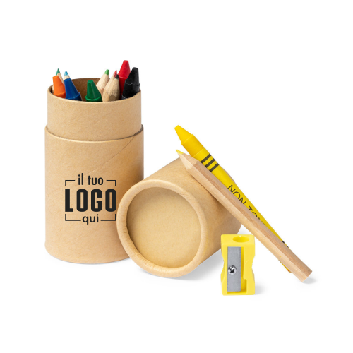 Set 13 pezzi matite e pastelli in astuccio cilindrico eco | Personalizzate