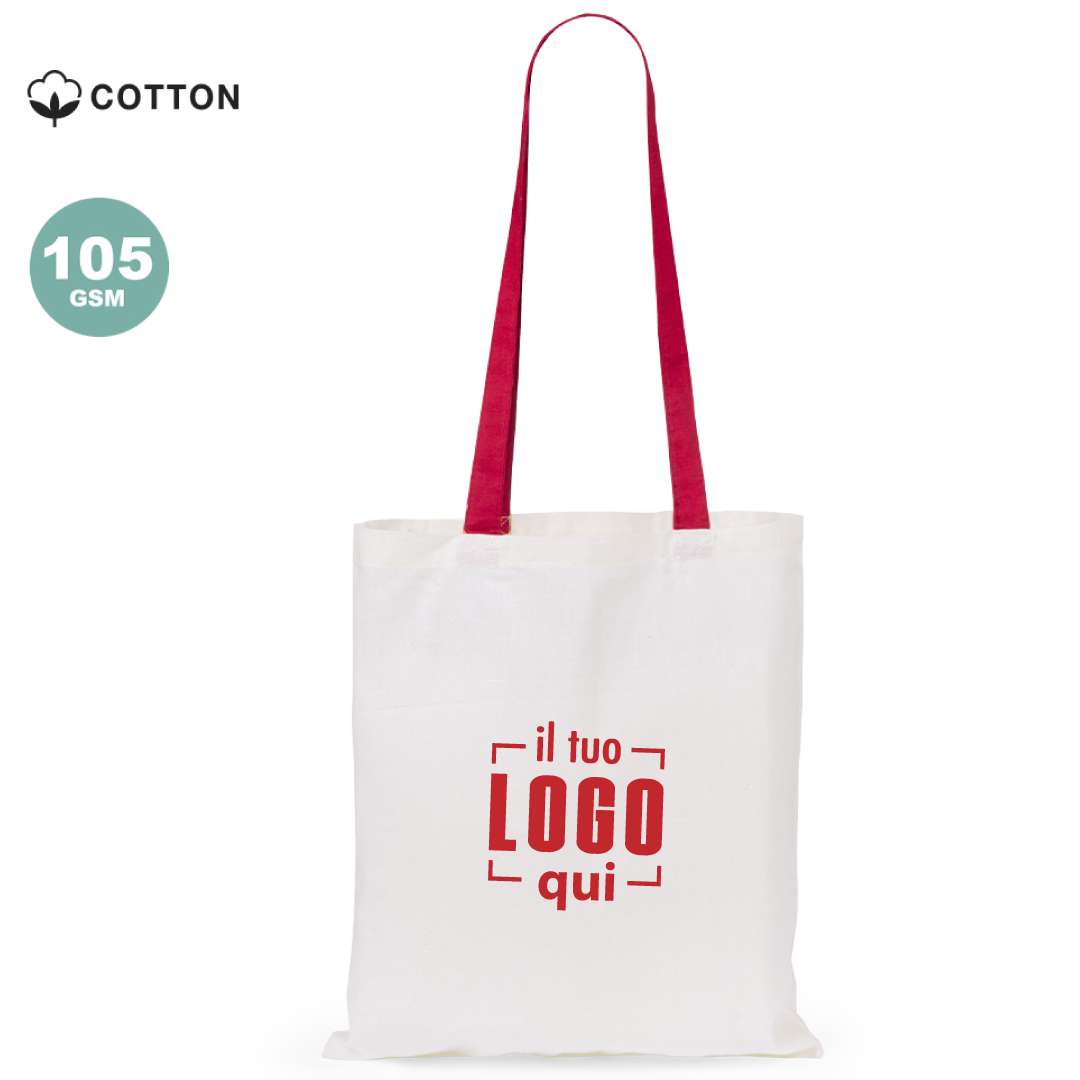 Realizzata in 100% cotone, questa borsa abbina il corpo in colore naturale a manici colorati vivaci, creando un look moderno e distintivo. Grazie ai manici lunghi da 70 cm e alle cuciture rinforzate, è comoda da portare a spalla e ideale per lo shopping o eventi promozionali. Supporta fino a 7 kg di peso.