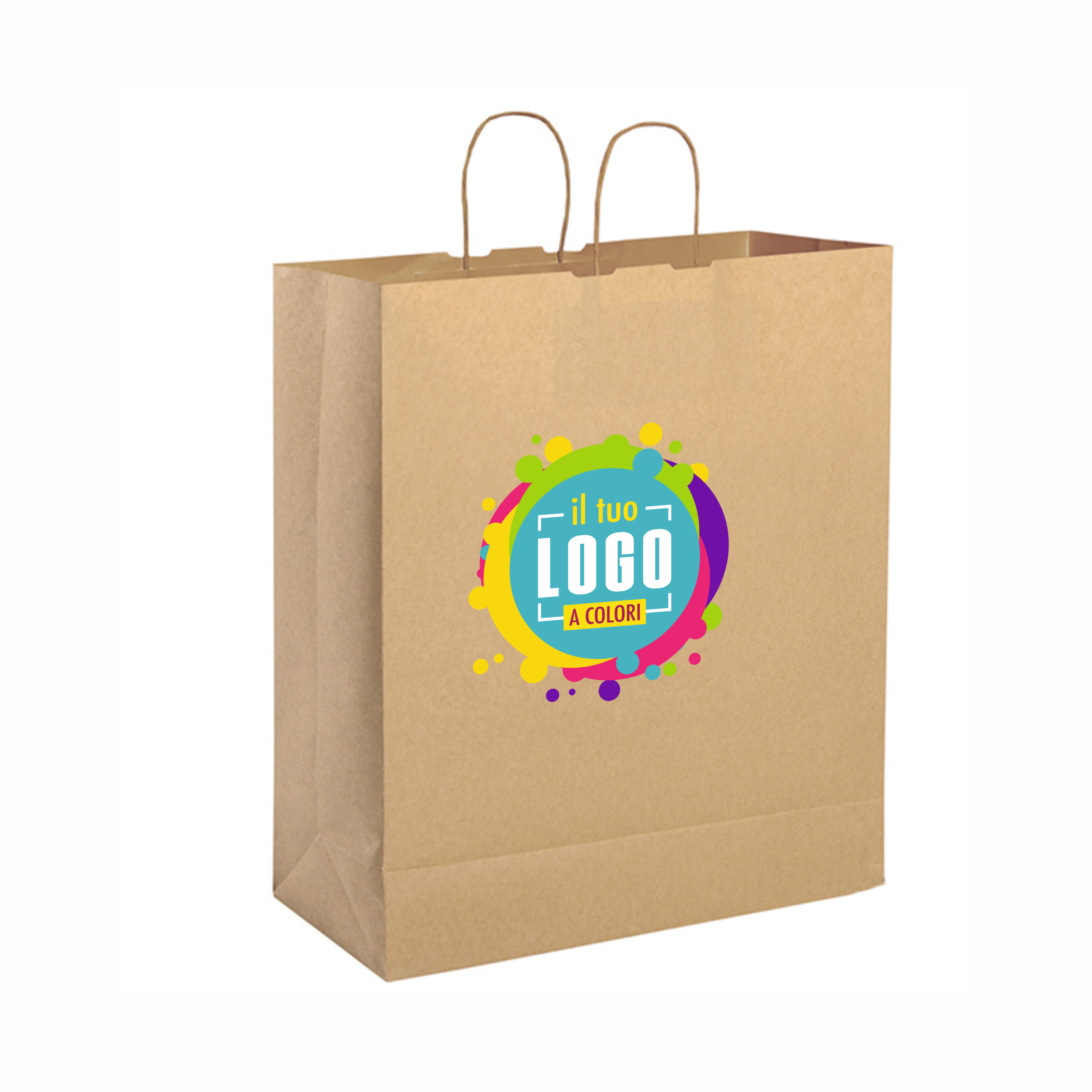 Robusta Shopper in Carta Naturale con Maniglia Ritorta di Grandi Dimensioni Personalizzata