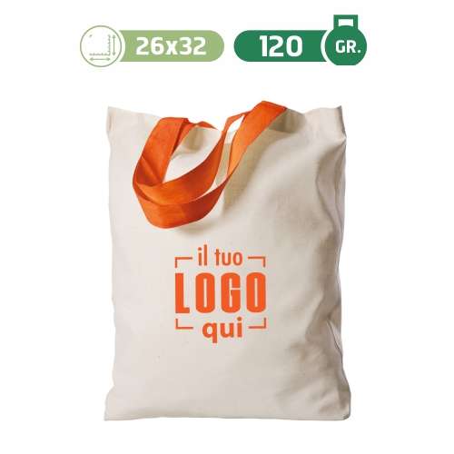 Borsa shopping pratica e leggera, realizzata in cotone da 120 g/m² con rifiniture cucite e manici corti, perfetta per eventi, fiere e attività promozionali. Facile da personalizzare con diverse tecniche di stampa.