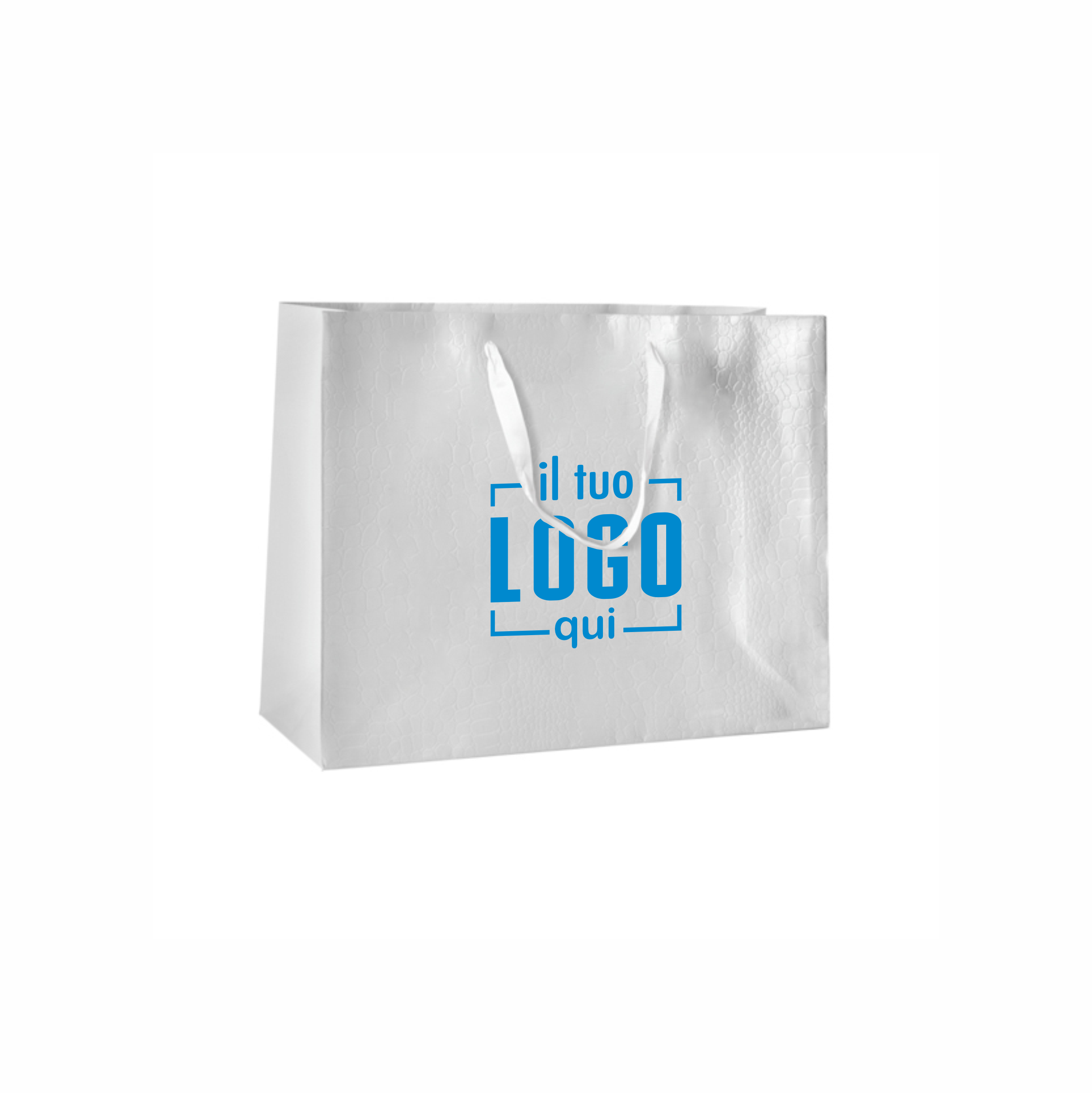 Shopper plastificata Opaca - Superior Carta Patinata Plastificata Lucida 210gr. Bistrol - Effetto Coccodrillo Manico in raso Annodato 2.5 cm