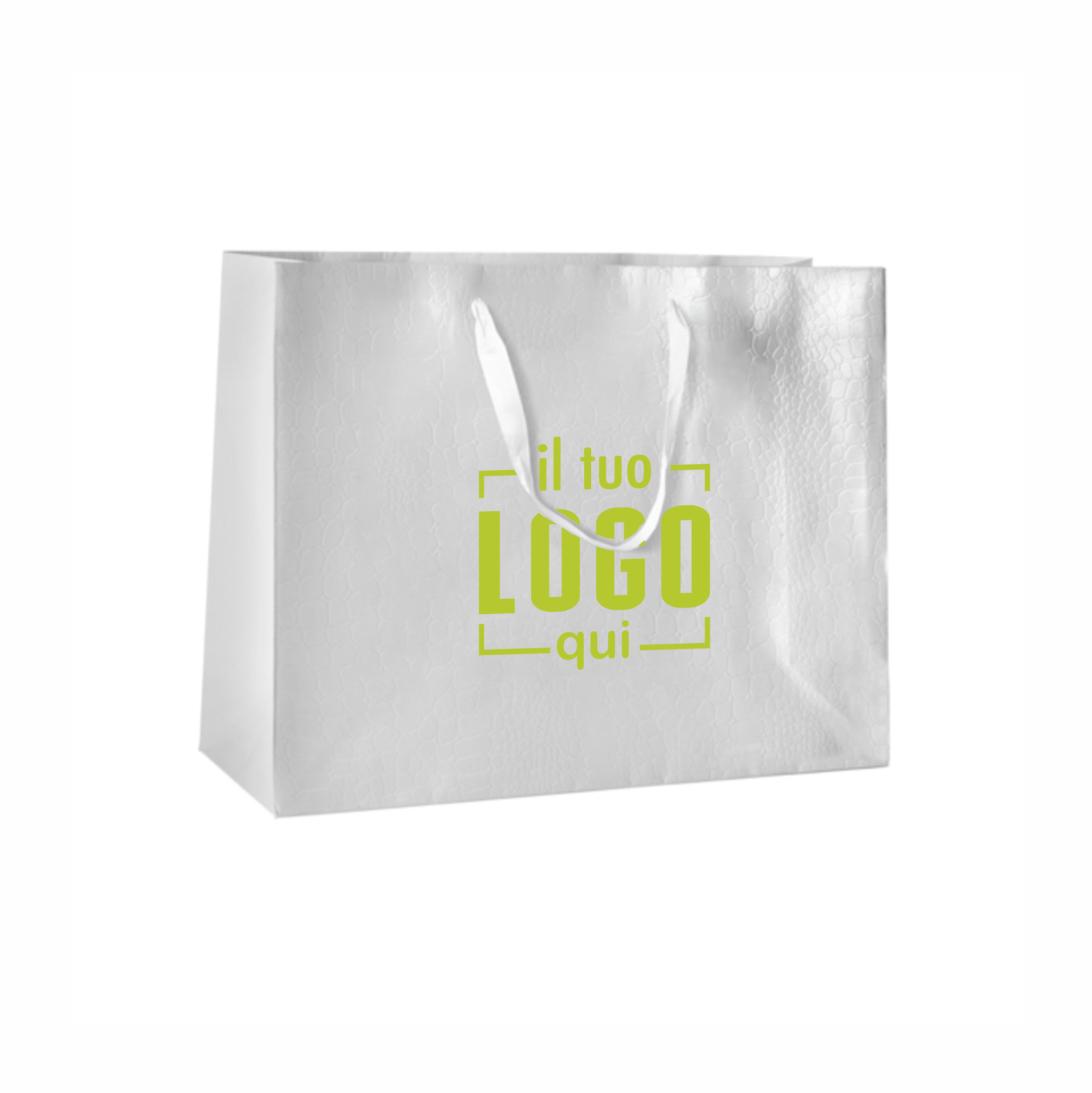 Shopper plastificata Opaca - Superior Carta Patinata Plastificata Lucida 210gr. Bistrol - Effetto Coccodrillo Manico in raso Annodato 2.5 cm