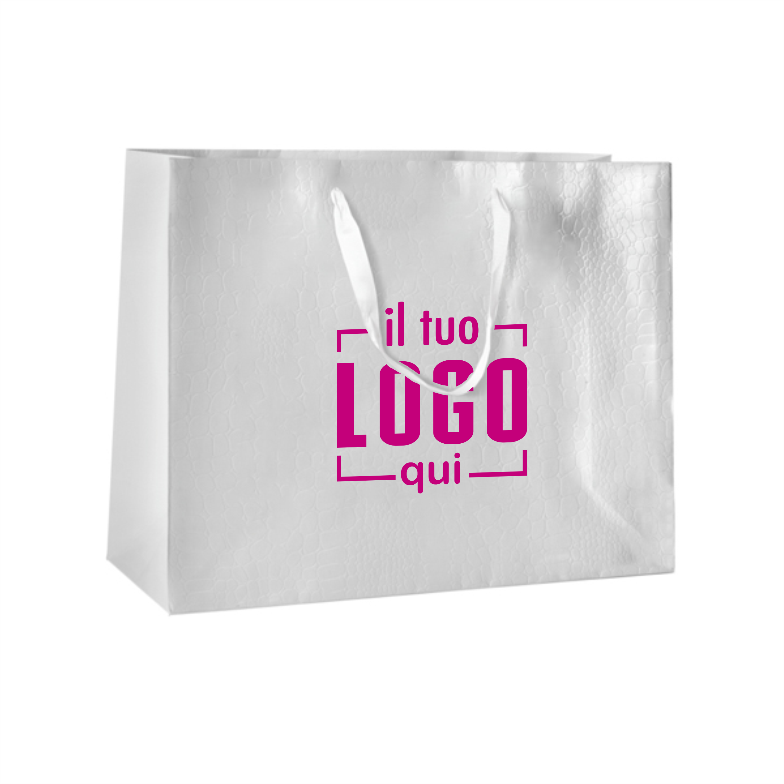 Shopper plastificata Opaca - Superior Carta Patinata Plastificata Lucida 210gr. Bistrol - Effetto Coccodrillo Manico in raso Annodato 2.5 cm. VENDIBILE SOLO NEUTRE