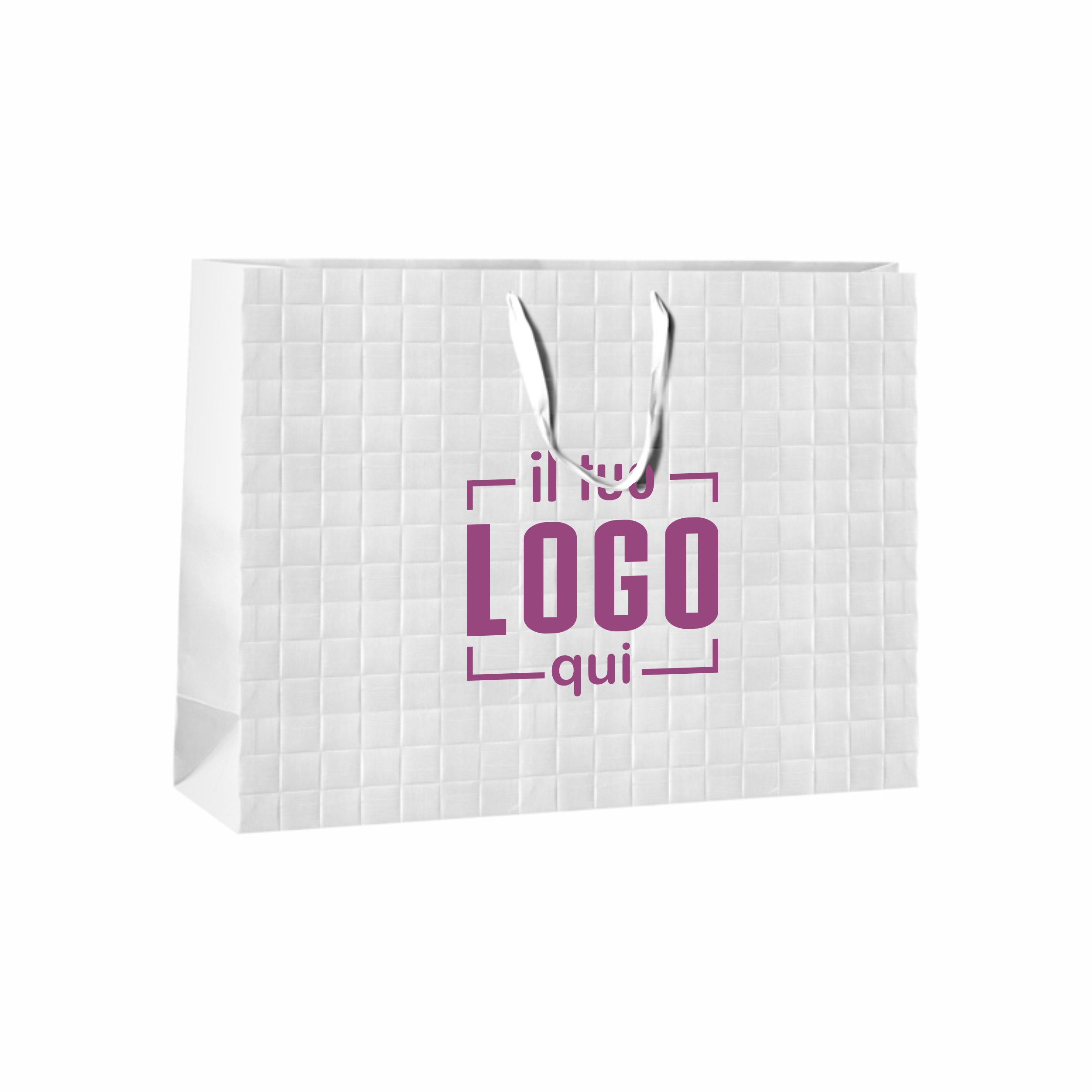 Shopper plastificata Opaca - Superior Carta Patinata Plastificata Lucida 210gr. Bistrol - Effetto Intrecciato Manico in raso Annodato 2.5 cm Shopper plastificata Opaca - Superior Carta Patinata Plastificata Lucida 210gr. Bistrol - Effetto Coccodrillo Manico in raso Annodato 2.5 cm