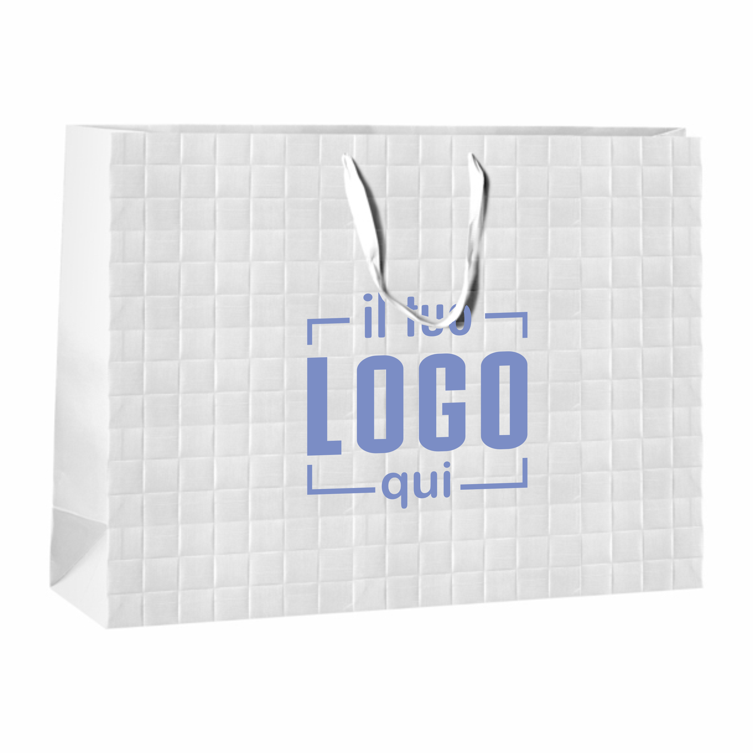 Shopper plastificata Opaca - Superior Carta Patinata Plastificata Lucida 210gr. Bistrol - Effetto Coccodrillo Manico in raso Annodato 2.5 cm