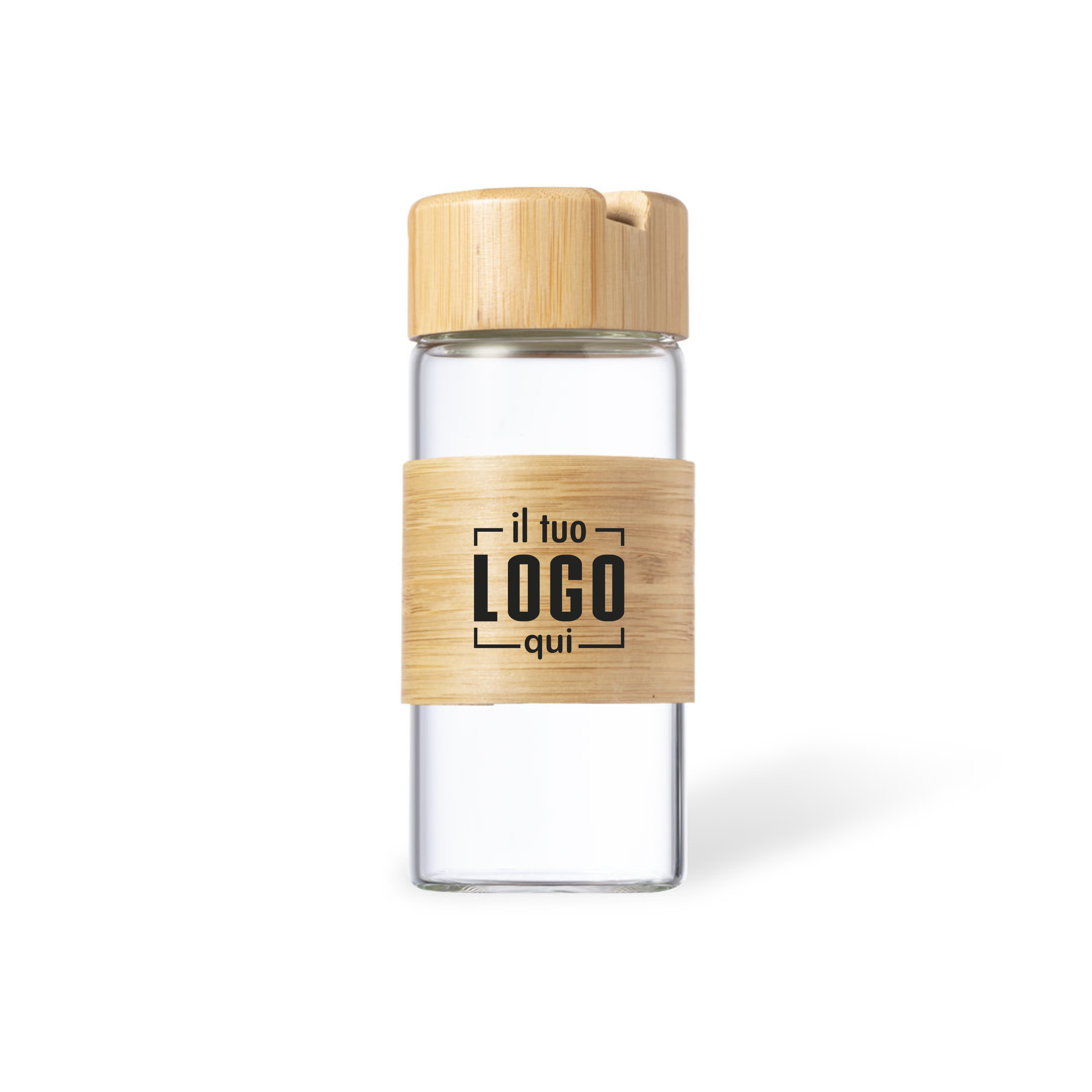 Borraccia Vetro 450 ml con Bambù e Porta Smartphone| Personalizzata