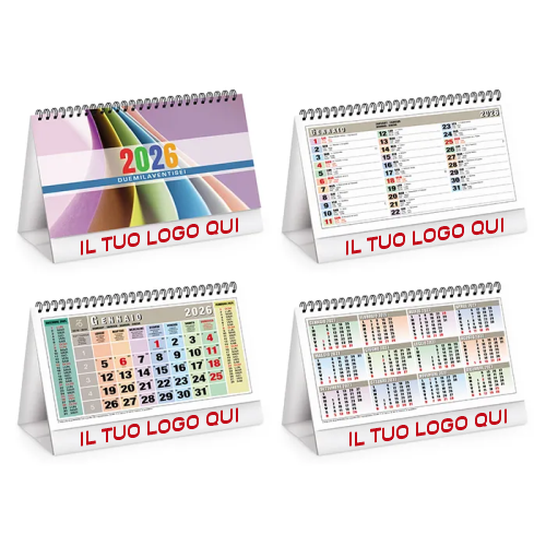 Il calendarietto spiralato da tavolo 2026 è il gadget perfetto per restare sotto gli occhi dei tuoi clienti tutto l’anno. Composto da 13 fogli mensili stampati su carta bianca da 90 g/m² , offre una visione chiara e ordinata del mese, con festività internazionali già incluse. Grazie alla spirale metallica e al robusto supporto in cartoncino bianco da 450 g/m², è stabile, pratico e resistente. In chiusura, la tabella riepilogativa dell’anno 2026 è perfetta per una consultazione veloce. La testata è personalizzabile tramite adesivo digitale o stampa serigrafica, rendendolo un eccellente strumento di branding.