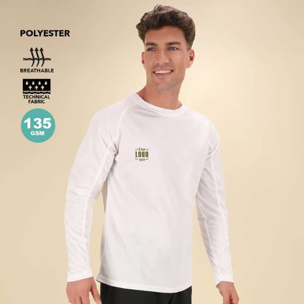 T-shirt tecnica a maniche lunghe, ideale per lo sport e il tempo libero in ogni stagione. Realizzata in 100% poliestere traspirante da 135 g/m², offre massimo comfort e gestione dell’umidità. Disponibile in colori vivaci e taglie da S a XXL, è perfetta anche per eventi promozionali e attività outdoor.