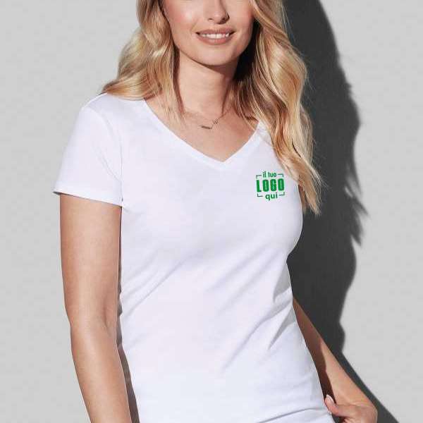 Maglia Manica Corta Classica Donna Scollo a V in Cotone Personalizzata Perfetta come Articolo Promozionale-Claire V-Neck