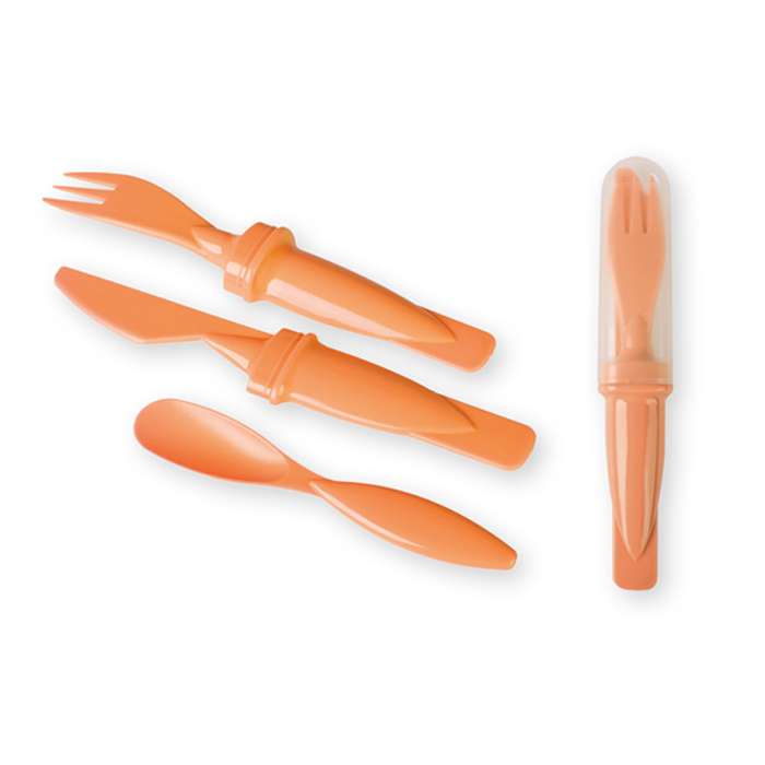 set posate forchetta, cucchiaio e coltello ; custodia di protezione