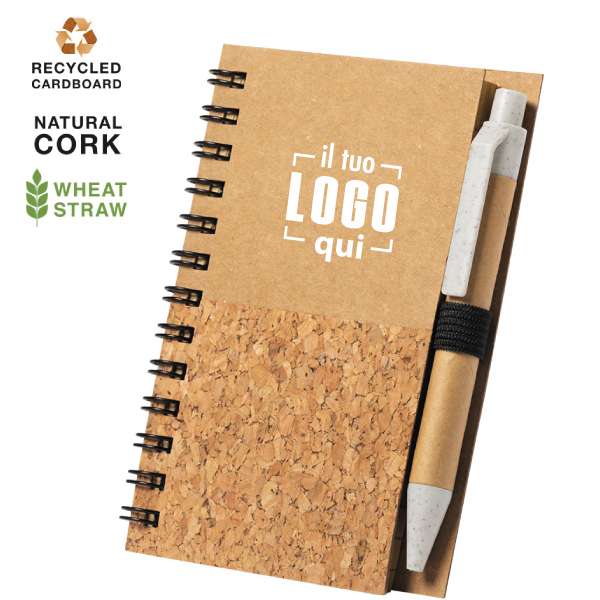 Set Quaderno e Penna Eco in Sughero e Cartone Riciclato | Personalizzabile