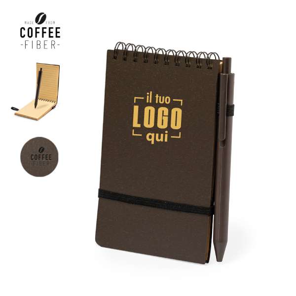 Set Taccuino 70 Pagine e Penna in Fibra di Caffè Personalizzato Ideale come Gadget Ecosostenibile-Pacam