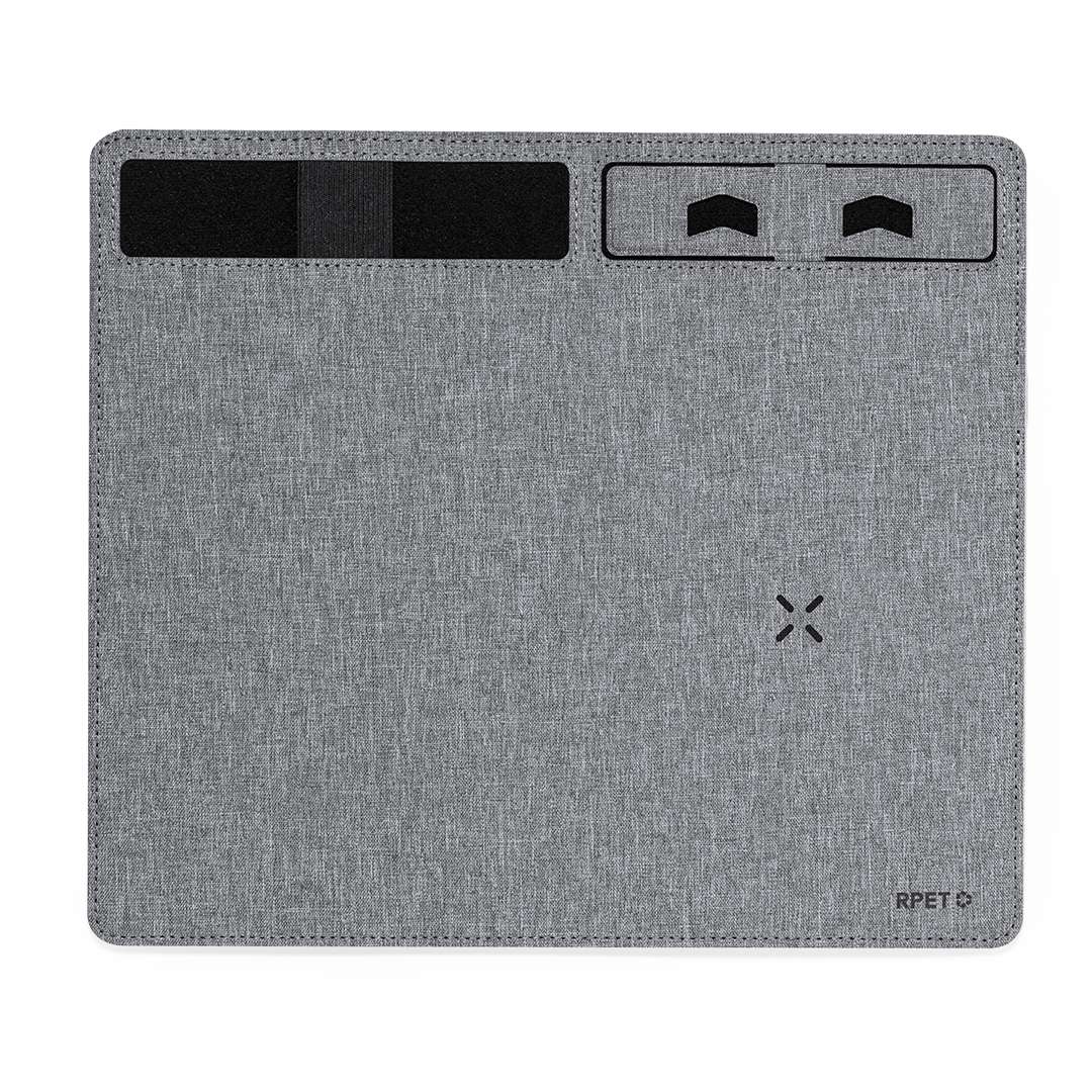 Stylish and functional mouse pad made of soft RPET polyester. With Type C input - black Type C cable included - and 15W wireless charger, compatible with devices equipped with Qi wireless charging technology. Including smartphone holder and ball pen holder. With non-slip base that guarantees stability and comfort in use. Includes instructions manualin English and Spanish. Presented in an individual kraft design box and in a recycled bag.RPET material is made from recycled plastic, thus promoting the reuse of plastic waste and helping the sustainability of the planet.Manufactured according to RoHS standards and in compliance with the following safety requirements: Overheating protection system. Over-charge protection system. Blocking system to prevent short circuits.