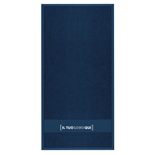 Telo mare spugna personalizzabile, realizzato in 100% cotone con peso di 400 g/m², morbido e assorbente. Dimensioni complessive di 50x100 cm, con banda opaca stampabile di 40x10 cm per personalizzazioni promozionali o loghi aziendali. Ideale come gadget estivo o accessorio da spiaggia di qualità, resistente e pratico.