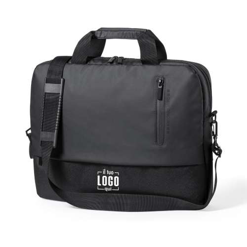 Valigetta Antonio Miro di qualità superiore in resistente poliestere 600D. Con un design sobrio e uno scomparto imbottito per notebook fino a 15". Con comoda maniglia di trasporto rinforzata, chiusure lampo con maniglie in metallo e tasca frontale. Logo Mirò sul davanti.